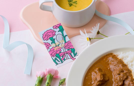 母の日限定パッケージの「バターチキンカレー」と「コーンポタージュ」が入った、母の日だけの限定ギフトセットを販売します。4月30日(木)までは、早期予約特典として対象のギフトが送料無料です。※実店舗と公式オンラインショップでは一部、内容が異なります