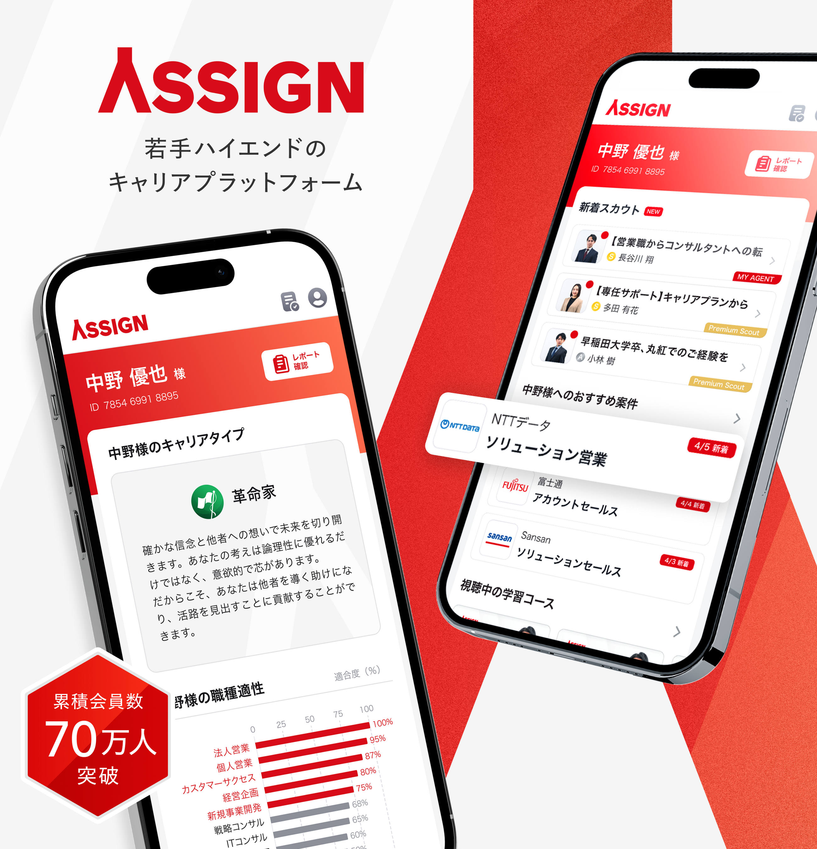 株式会社アサイン(本社:東京都千代田区、代表取締役:小瀬村卓実、以下「アサイン」)は、2026年4月、累計70万人が利用する若手ハイエンド向け転職サイト『ASSIGN(アサイン)』をリニューアルいたしました。