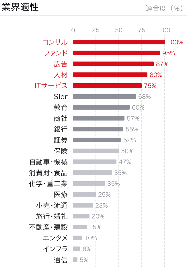 「営業は向いていると思っていたけれど、企画職の適性も高い」「IT業界だけでなくコンサル業界にも強みが活きる」など、自分では気づかなかった選択肢の発見につながります。