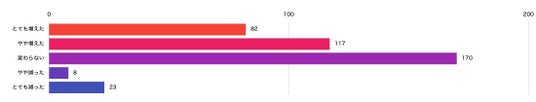 「新生活を迎えた際、ストレスや疲れはどのように変化しましたか?」という質問に対し、「とても増えた」「やや増えた」と回答した人の合計は49.75%となり、約半数がストレスの増加を実感していることが分かりました。