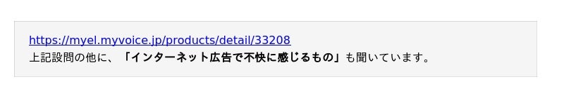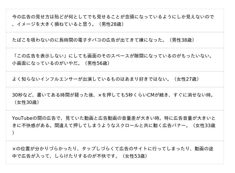 インターネット広告の表示状況や広告についての考え方、自由記述にて不快に感じたことなどについて聞いています。調査結果をお知らせいたします。