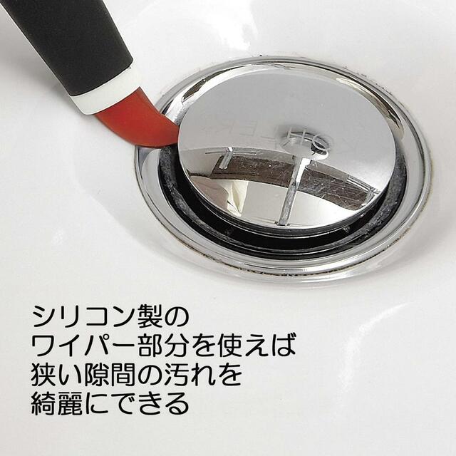 持ち手部分にシリコン製のワイパー部を備え、排水溝の隙間にこびりついた汚れを、傷をつけることなく剥がし取ります。