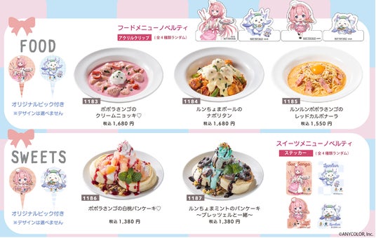 コラボメニュー:周央サンゴさんとルンルンさんをイメージした5商品(特製ピック付き)
