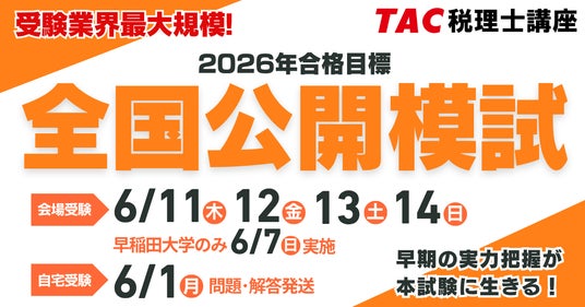 ※TACで2026年合格目標「ベーシック」「速修」「上級」「チャレンジ(4-7月期)」の各コースおよび「直前対策講座」を 受講中の方は全国公開模試がカリキュラムに含まれているため、有料申込の必要はございません。