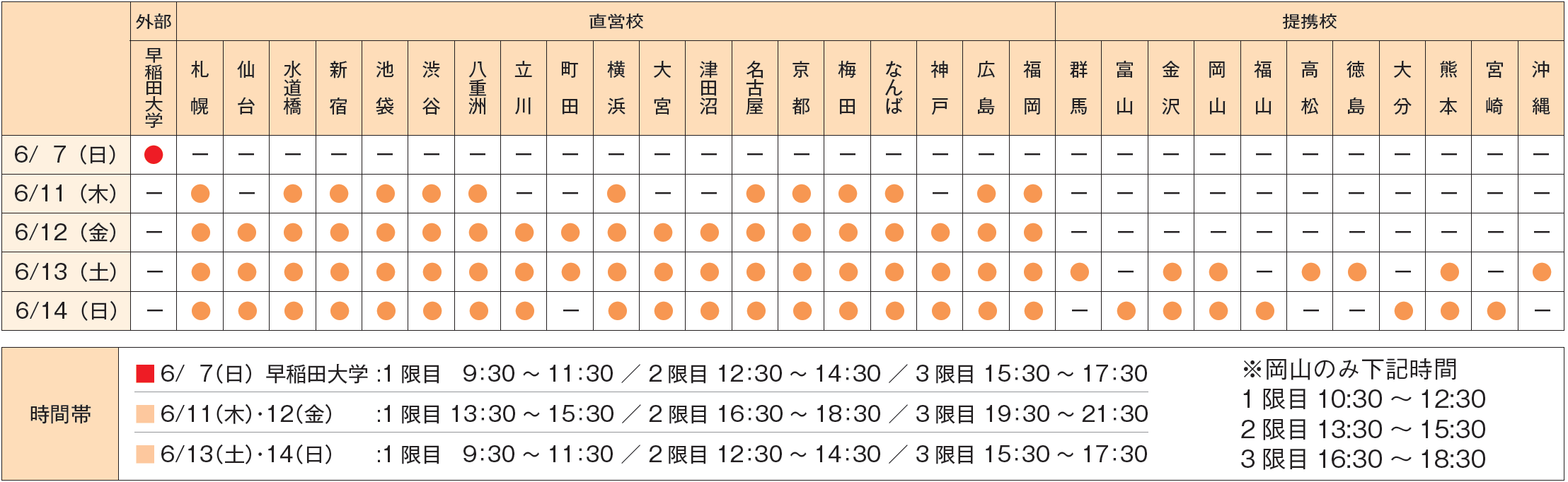 早稲田大学のみ6/7(日)