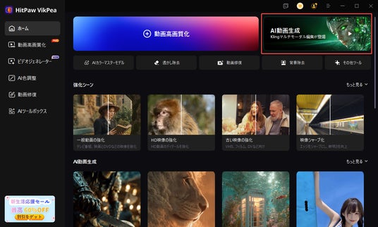 ステップ2:メイン画面の「AI動画生成」をクリックします。