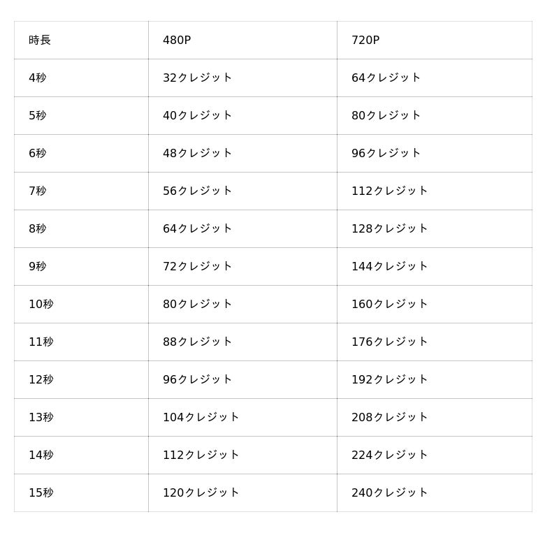 ■ 動画生成料金(時長 × 解像度)