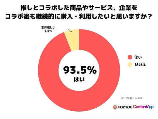 「推しとコラボした商品やサービス、企業をコラボ後も継続的に購入・利用したいと思いますか?」という質問では、α世代の91.9%、Z世代の96.4%が「継続して購入・利用したい」と回答した。