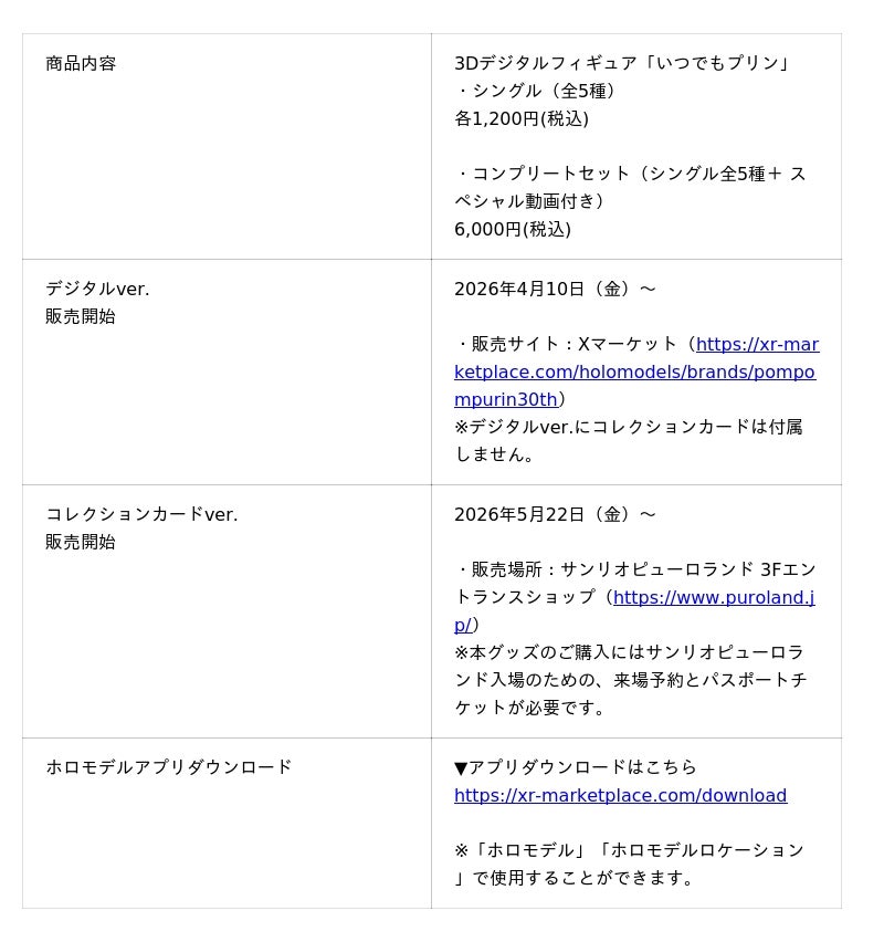 株式会社Gugenka(代表取締役CEO 三上昌史)は、株式会社サンリオエンターテイメントと協力し、サンリオキャラクター「ポムポムプリン」の30周年を記念したサンリオピューロランドのスペシャルイベント「POMPOMPURIN 30th Anniversary」の一環として、3Dデジタルフィギュア「いつでもプリン」を本日2026年4月10日(金)よりデジタルECサイト「Xマーケット」でデジタルver.の販売を開始いたします。