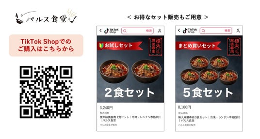販売場所: 「パルス食堂」公式オンラインストア https://pulse-dining.jp/ 「パルス食堂」TikTok Shopアカウント 下記QRコード