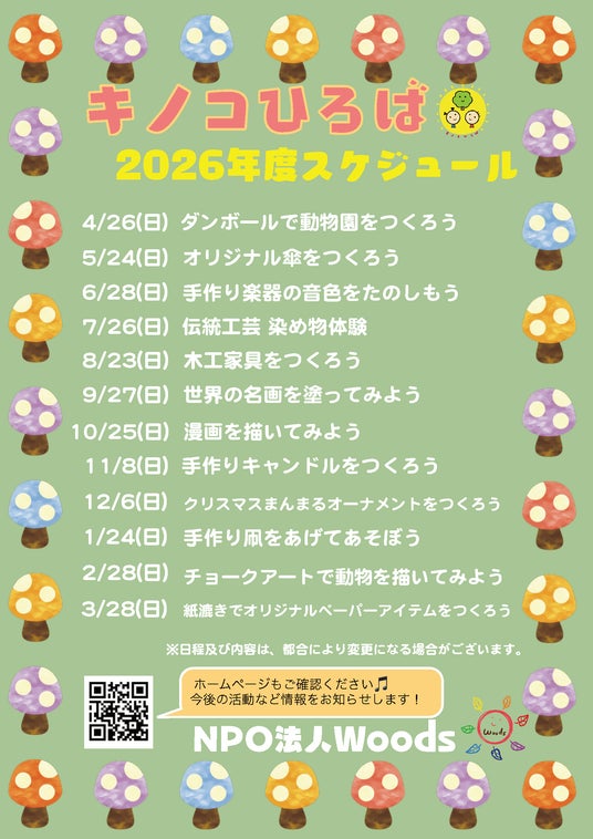 [キノコひろば] - NPO法人Woods主催、2026年度開催スケジュール公開