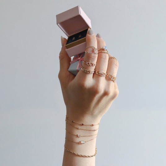「華奢なジュエリーをこんなに重ね付けするといろんなバリエーションが生まれるんだ」といった、ジュエリーに対して新しい価値観を感じていただきたく、誕生したのがcui-cuiです。