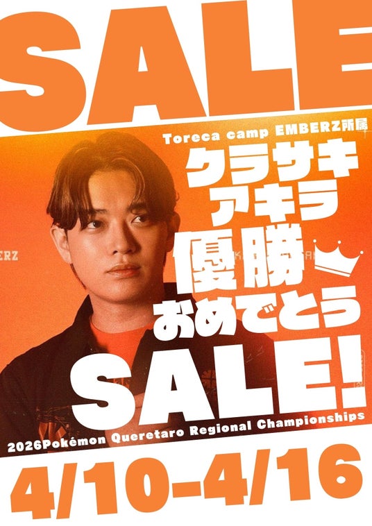 株式会社centerwave(本社:愛知県名古屋市、代表取締役:齊藤航省)は、当社が運営するトレーディングカードゲームのプロチーム「EMBERZ」に所属するクラサキ アキラ選手が、「2026 Queretaro Pokemon TCG Regional Championships」において優勝いたしましたことをお知らせいたします。