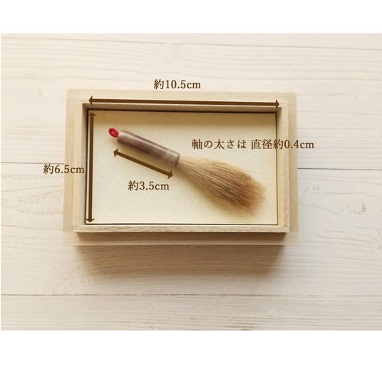 箱の内部分の大きさ 約10.5cm×約6.5cm 筆の軸の長さ約3.5cm 太みは約直径0.4cm