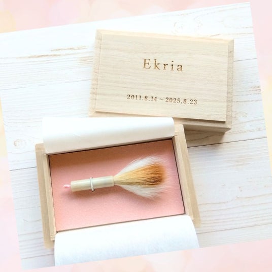 ◯箱を開けた瞬間から涙があふれました。筆先を触るとなくなったうちの子の感触になれて本当に嬉しいです。触れられる遺品が残せたのがすごく良かったです。梱包もとても丁寧でした。一生大切にします。本当にありがとうございました。