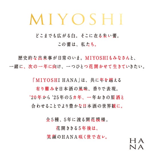 最終年となる2026年の「MIYOSHI HANA」は、落ち着きのある香りと、2020年の日本酒との調和によって、濃厚でありながら複雑な奥行きを感じられる味わいに仕上がっています。