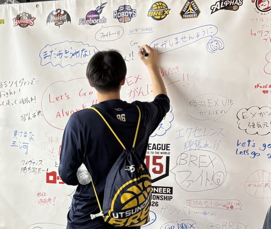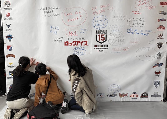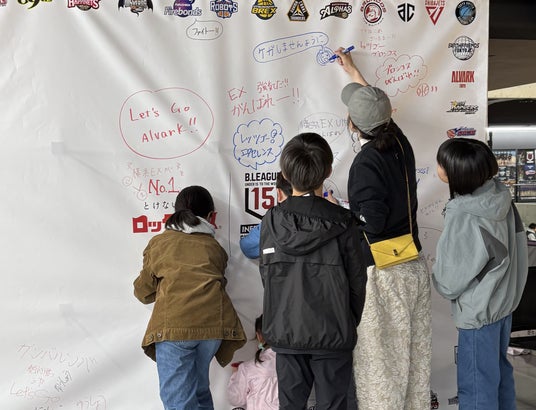 B.LEAGUE U15の全51チームのクラブロゴを掲載した横断幕(横3m×縦2m)を設置し、選手・関係者・来場者全員にメッセージを書いていただき会場を彩りました。