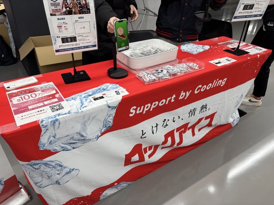 ロックアイス(R)特設ブースを設置し、B.LEAGUE U15記念グッズなどがあたる抽選会を開催しました。また、アイシング・飲料用氷の無償提供も行い、選手や関係者のみなさまに活用いただきました。
