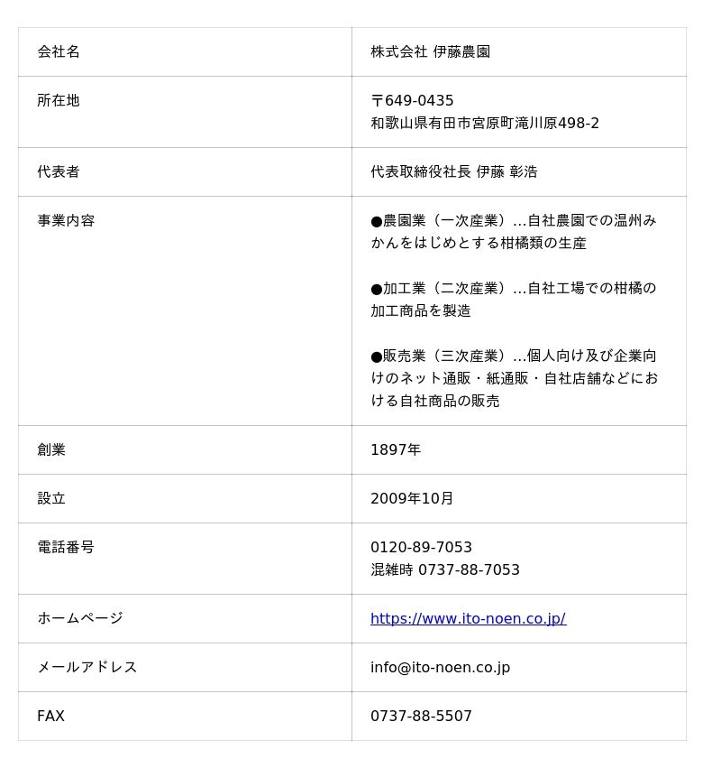 伊藤農園は、和歌山県有田市にて、有田みかんをはじめとする柑橘の生産から加工・販売までを一貫して行う農園です。