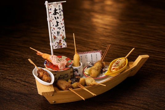 あいよっ!が掲げる「京串揚げ」は、従来のバット提供のB級グルメとは異なり、串揚げを一皿の料理として美しく盛り付けた、京都発の串揚げです。