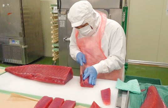 仕組みを構築。坂下水産によるプロの目利きと熟練の技により現地加工した“生”まぐろを