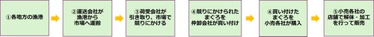 【首都圏でまぐろを買い付ける場合の一般的な流通経路の一例】