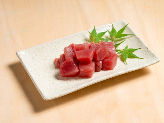 沖縄では、“生”のまぐろのブツ切りが親しまれています。ブツ切にカットすることで生まぐろのもちもちとした食感をより楽しんでいただけます。