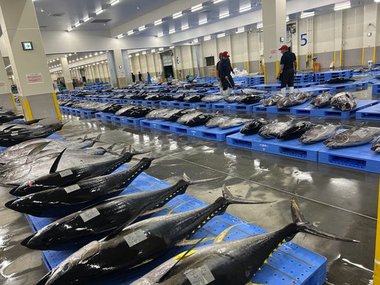 沖縄県の漁港で水揚げ・市場に並べられる“生”まぐろ