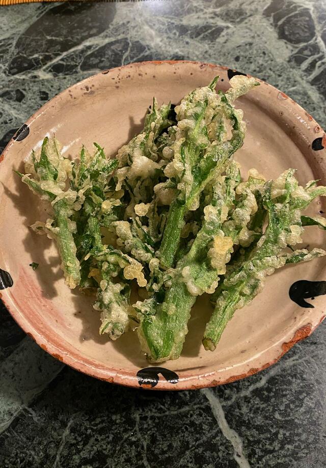 そしてまたもやプンタレッレの天ぷら。どうしてこんなに頻繁にプンタレッレを揚げているのか、TORUくんに尋ねたら、育ちすぎたプンタレッレでも天ぷらにしたら美味しいかどうかって試しているんだって。育ちすぎたものも油で揚げると美味しい。私はそう思います。