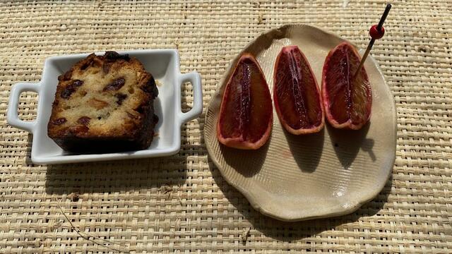 ラーメン & Cake aux fruits & blood orange。
