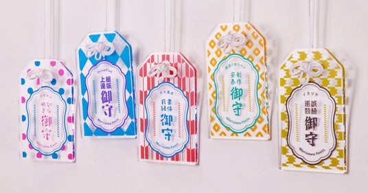 ひらめき御守(すずむし)、組版上達御守(DriveFlux)、書体良縁御守(タカ風太)、制作安泰御守(翠流くゆりペン)、