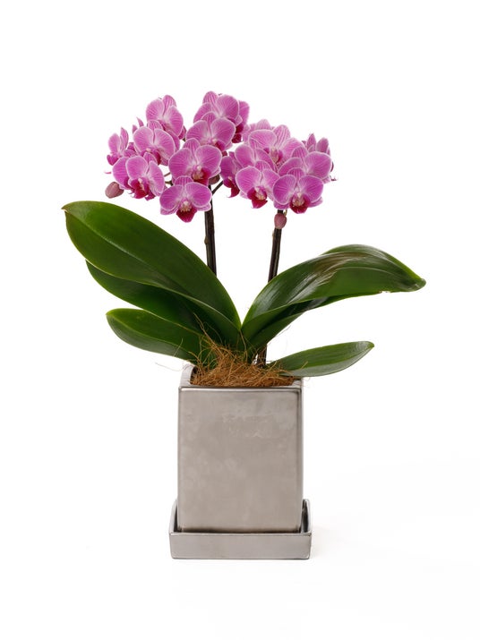 ミディ胡蝶蘭 ピンク 2本立ち クローム鉢(4号)