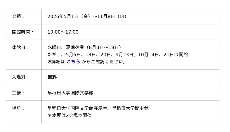 5月1日より、国際文学館(村上春樹ライブラリー)・早稲田大学歴史館で共同開催