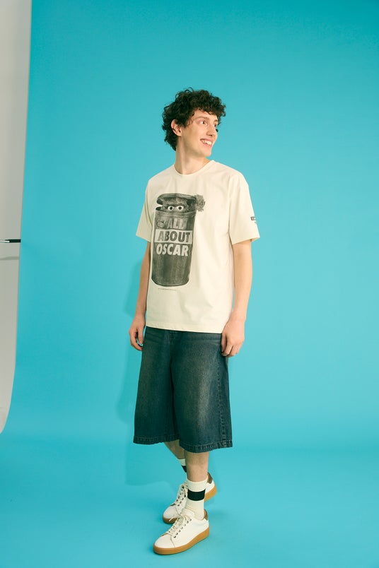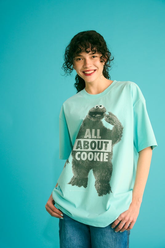 フロントにエルモ、クッキーモンスター、オスカーのモノクロフォトと”ALL ABOUT ELMO/COOKIE/OSCAR“のフレーズをあしらった、アーバンライクで洗練された雰囲気が魅力のTシャツ。背中にはそれぞれのキャラクターの名前や誕生日、趣味、好きな食べ物などのプロフィールをプリントし、前後どちらから見ても楽しめる、遊び心あふれるデザインに仕上げました。