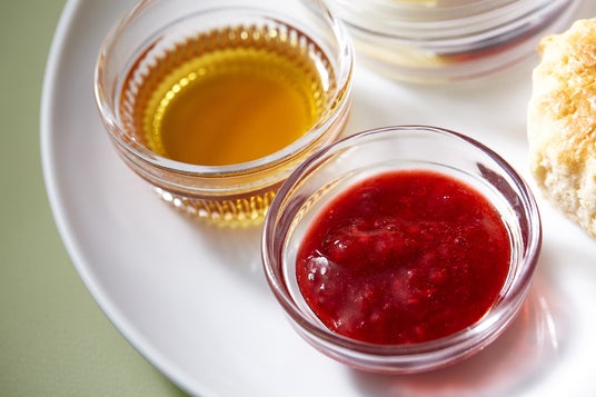特製苺ジャムとメープルシロップの2種類をご用意。組み合わせ次第でまた違った美味しさに。