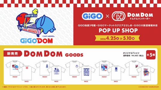 ドムドムハンバーガーのオフィシャルグッズを販売するPOP UP SHOPを期間限定で開催いたします。GiGO×ドムドムハンバーガーキャンペーンの開催を記念した新規デザインのオリジナルTシャツも発売いたします。