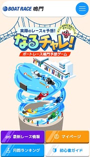 ボートレース鳴門では、「なるチャレ!」と題した、実際のレースを無料で予想できるゲームを開発しました。オフィシャルウェブサイトや公式Xからログイン可能ですので、ぜひご体験ください。