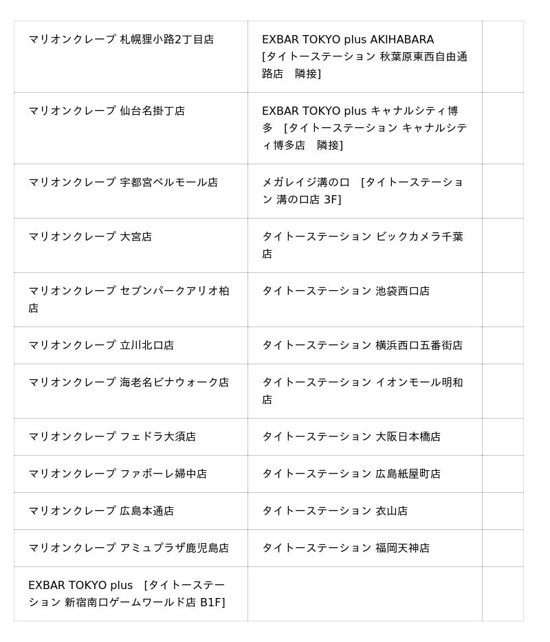 「パラノマサイト×タイトーステーション」コラボクレープ販売店舗: