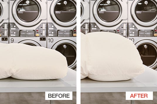 湿気を含んでしぼんだ羽毛ふとんも、タンブル効果によりふっくらと仕上がります。