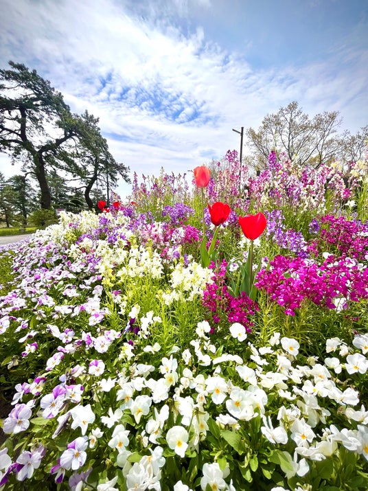春彩の畑パッチワークの寄せ植えはファンからの支持率No1まるで夢の世界に入り込んだような7万株の花達が織りなすパッチワークの寄せ植えはファンからの支持率No1。品種の数は7種類ですが、色のバリエーションが加わるのでさらに華やかさが増します。