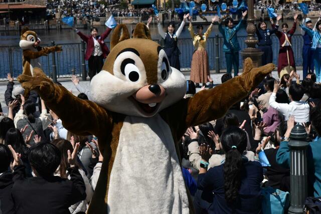 グリーティングショーでは、水上だけではなく、久しぶりに陸上にもキャラクターが登場!