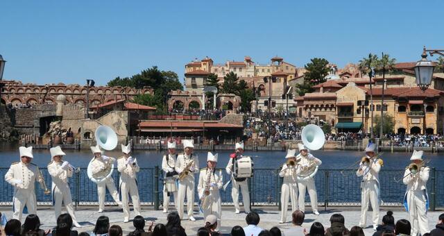 そして、アニバーサリー衣装を着たミッキーたちが船で登場すると、東京ディズニーシー組曲のように、懐かしい各テーマポートを象徴するメドレーが流れます。