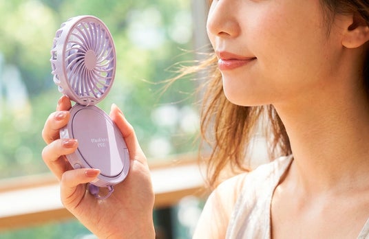 4月の突然の暑さによる汗・メイク崩れ対策に。通勤・外回り・移動中でも、ポーチに入る約100gのコンパクト設計「ミラハナファン」が、デパコスのようなデザインで、初夏のお直し時間を涼しく快適に変えます。