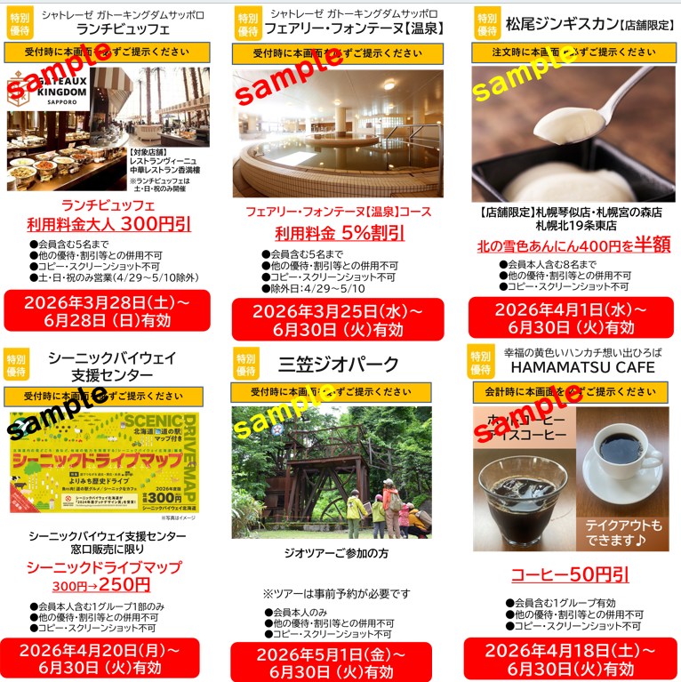 - 特別優待: 期間中、各施設にて期間限定の会員優待サービスを実施