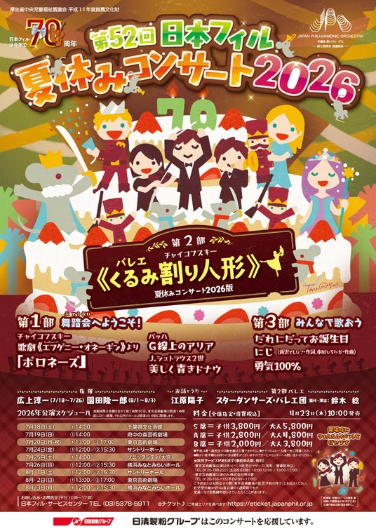 公益財団法人日本フィルハーモニー交響楽団(東京都杉並区、理事長:石塚邦雄)は、2026年7月18日~8月3日に首都圏1都3県と京都で第52回日本フィル夏休みコンサート2026を開催します。