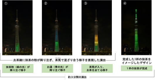 本イベントは、京都・祇園に本店を構える老舗茶舗「祇園辻利」とコラボレーションしたカフェメニューが登場するほか、展望台に日本のお茶文化を感じることができるフォトスポットや装飾が初登場します。また、新しい特別ライティング「喫茶去(きっさこ)」の点灯、新茶時期の爽やかな緑をイメージした新しい衣装のソラカラちゃんも登場します。さらに、朝の天望デッキを貸し切って、ゆったりとお茶の世界に触れることができる「新茶の季 (とき)を味わう ~東京・空茶