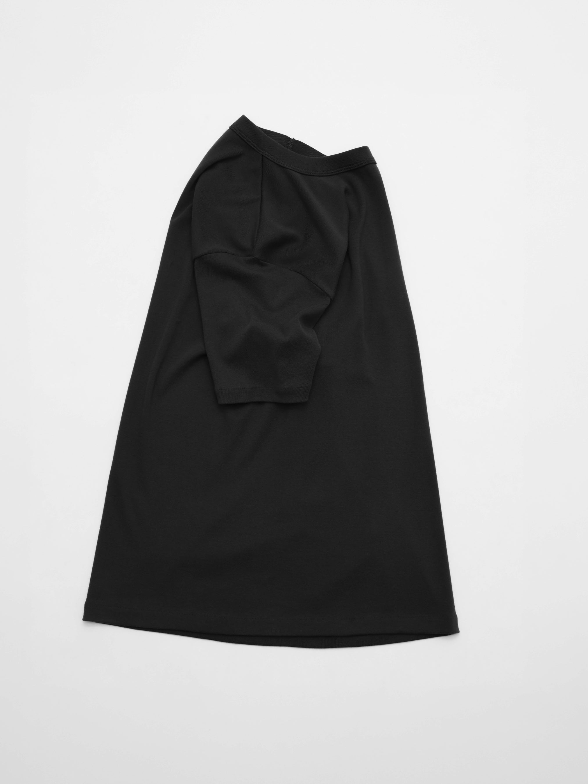 この一着は、身体にすっと馴染むタイトなフィットでありながら、窮屈さを感じさせないのが特徴。やわらかなコットンを使用したフライス生地は高い伸縮性を持ち、ワンサイズながら体型を問わず自然にフィットします。インナーとしても響きにくく、1枚で着ても透けにくい仕上がりです。