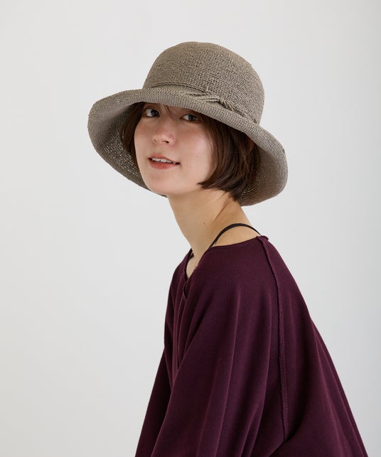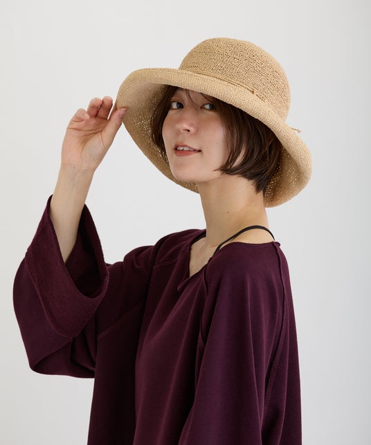 OJO+洗える手編み中つばハット:ナチュラルベージュ