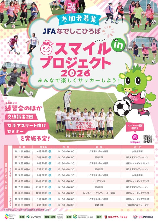 さいたま市では、女子中学生年代の競技人口減少という課題を受け、すべての女子中学生が気軽にサッカーを楽しめる場を提供する「スマイルプロジェクト2026」を実施します。