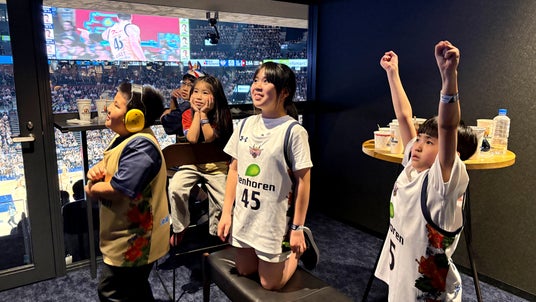 当日はフレンドリールームにも伺い、自閉症のお子さんとそのご家族のご様子を拝見いたしました。ご本人とご家族、ご親戚を含め12名の方が利用されており、お子さんは室内とバルコニー席を行き来しながら、ご自身のペースで試合観戦を楽しまれていました。保護者の方からは、「本人と一緒に、親戚も含めてみんなで試合を楽しむことができ、本当に良かったです」とお話しいただきました。